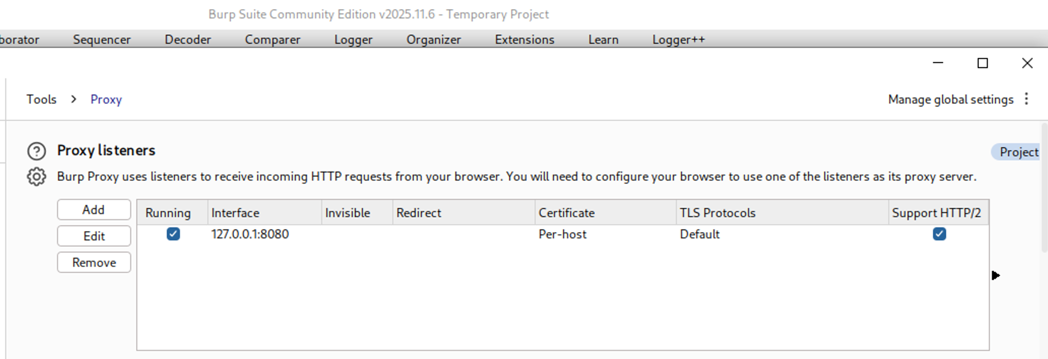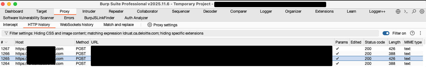 On the VDI, we run Burp Suite Community only as a lightweight proxy endpoint.