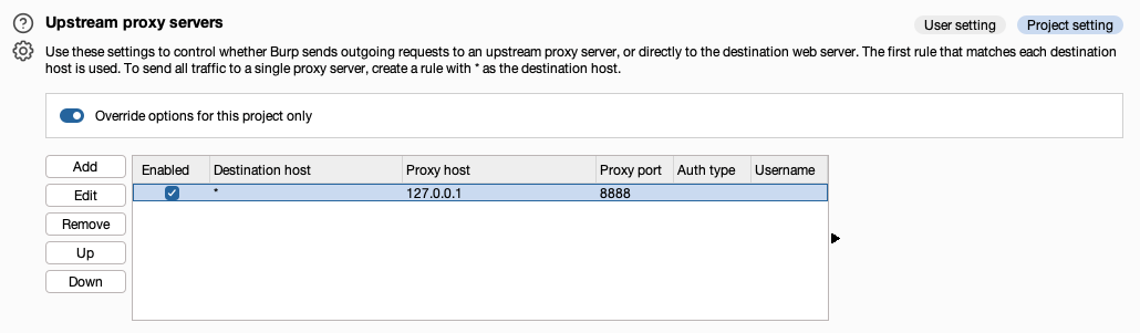 The figure below shows Burp Pro (Local Machine) is configured with upstream proxy: