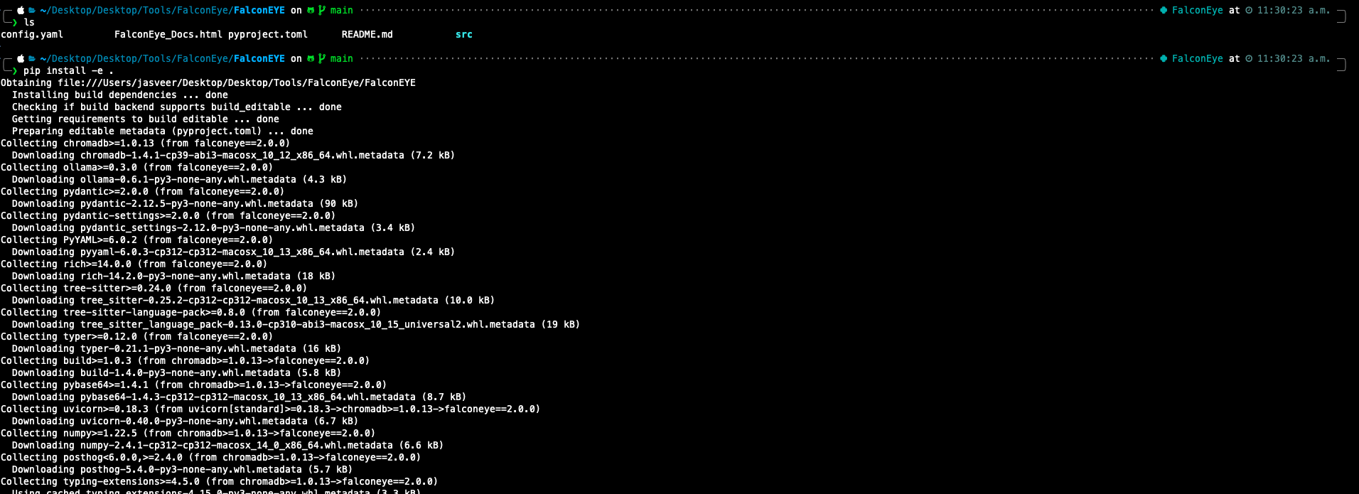 At this stage, the FalconEye command line tool should be available. The figure below shows FalconEye being installed successfully.